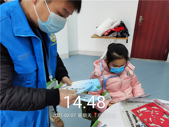 2月7日下午,向上社區(qū)組織志愿者向社區(qū)居民發(fā)放垃圾分類宣傳手冊。垃圾分類指導員給居民們詳細講解垃圾分類知識,包括垃圾分類的概念、垃圾分類的好處、垃圾分類的方法及如何進行垃圾分類。