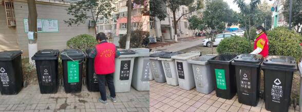 “王爺爺,您家里遙控器里的電池屬于有害垃圾,千萬不能隨意亂丟哦,廢舊電池會極大污染水和土壤,給環(huán)境造成很大的破壞,一定要記住把它們放到有害垃圾的垃圾桶”。垃圾分類過程中,志愿者穿著紅馬甲向村民宣傳介紹如何分類處理日常生活垃圾,倡導大家垃圾分類從自我做起,從現(xiàn)在做起。志愿者的“桶邊值守”,增強了居民自覺參與垃圾分類的意識,使“綠色、低碳、環(huán)保”理念深入人心。“廢棄酒瓶可以回收用來插花,廢棄牛奶盒可以回收用來種植多肉植物……”志愿者們分享的環(huán)保知識贏得了居民的一致好評。
