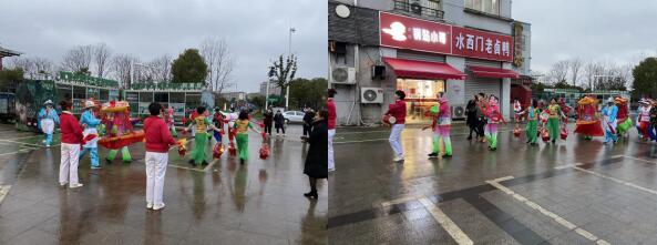 近年來(lái)落戶在谷里社區(qū)的新谷里人增多,為了讓他們感受到節(jié)日的氛圍,了解社區(qū)的特色民俗文化,豐富轄區(qū)居民群眾的精神文化生活,旱船表演團(tuán)隊(duì)還特意轉(zhuǎn)場(chǎng)去街道文化廣場(chǎng),考慮疫情因素,為避免人員聚集,此次活動(dòng)以快閃的形式進(jìn)行。喜慶的鑼鼓聲,歡快的扭秧歌,難得一見的“劃旱船”表演從廣場(chǎng)走向集鎮(zhèn)沿街商鋪,引來(lái)來(lái)不少居民群眾的掌聲和喝彩,為谷里的居民帶來(lái)豐富的視聽感受,讓元宵佳節(jié)增添了濃濃的民俗風(fēng)味和喜慶的節(jié)日氛圍