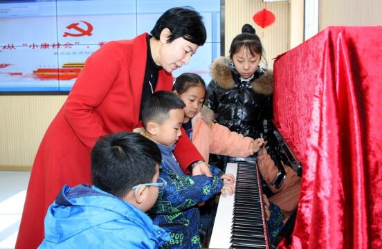 杏花雨志愿者服務(wù)中心徐修芳老師正在手把手把輔導(dǎo)孩子練習(xí)鋼琴
