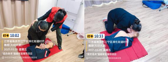 在活動現(xiàn)場,專業(yè)老師講解了“心肺復蘇”“氣道異物梗塞”等方面的理論知識,系統(tǒng)地講述了現(xiàn)場救護的基本原則和施救技巧,并就日常生活中容易出現(xiàn)的一些突發(fā)疾病以及采取的急救措施與大家進行了互動,為大家解答疑惑。除此之外,還對徒手心肺復蘇的全過程、判斷患者有無意識、呼救、清理口腔分泌物開放氣道、人工呼吸、胸外心臟按壓”以及每一環(huán)節(jié)的體位、按壓各種手法和細節(jié)進行了實際演示。