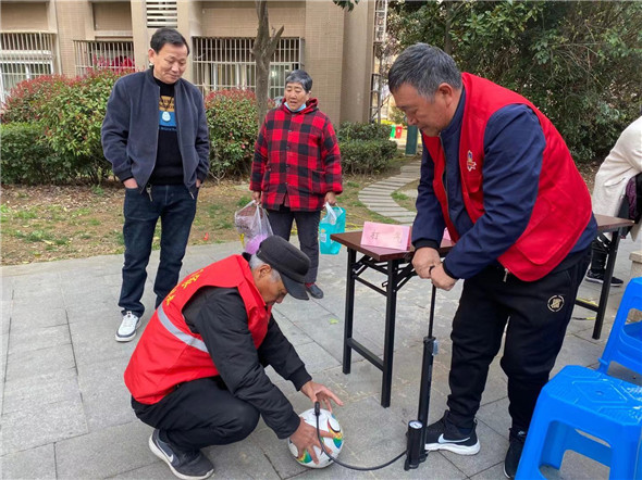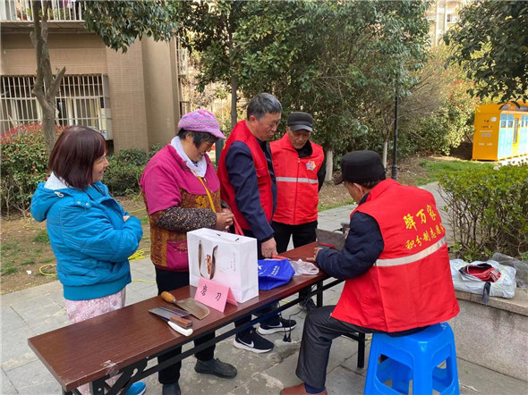 這一天,社區(qū)黨員孫如海、王存海、杜章明也志愿為居民提供了便民服務(wù)。孫如海第一次當(dāng)起了磨刀師傅,雖然技術(shù)不是很熟練,但是他十分認(rèn)真地為居民磨好每一把刀。王存海和杜章明俯下了身子,幫轄區(qū)孩子們的皮球打氣,孩子們漏了氣的皮球在爺爺們的幫助下滿血復(fù)活。