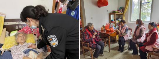志愿者們?yōu)樯鐓^(qū)一些空巢孤寡老人進行上門慰問,送去水果等慰問品,并與其促膝交談,詳細詢問了老人近期的身體狀況,同時,南京市公安局監(jiān)管支隊執(zhí)法勤務(wù)大隊警醫(yī)送醫(yī)上門,為老人進行健康檢查,告知其日常健康維護注意事項,對其家人詳細地進行了日常護理指導(dǎo)。