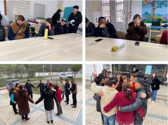 活動在腦力熱身”看表情猜詞語“游戲中開始,志愿者老師寫下幾個表情的詞語,讓看到詞語的人通過表情表現(xiàn)出來,讓其他人來猜。為了充分表現(xiàn)詞語的意思,每一位殘友都努力夸張的表現(xiàn)著自己的表情,逗得大家哈哈大笑,樂不思蜀。接著,大家來到了戶外開展在“縮小包圍圈”游戲,殘友們很快圍成一個圈,在向內(nèi)跨第一步時,小組成員之間彼此互相照應,大體的圓圈依舊成型。在跨第二大步的時候有些組員忍不住笑出了聲,原本大大的圓圈已經(jīng)變得“畸形”,小組成員之間的距離也越來越近。最后一步跨完,已經(jīng)沒有充足的地方可供所有人立足了,小組成員們都緊緊的依靠在了一起。在分享感悟時,有組員闡述到:“一直圍成一個圈需要大家的共同努力,每個人都是這個圈里不可分割的一部分。”有的組員說:“當圓圈縮小后,我必須改變自己的站位方式,不能再像之前那樣隨意,否則就不容易維持好圈子。”還有的組員說:“包圍圈雖然縮小了,但是大家都擠在一起,互相依靠,其實也很快樂。”
