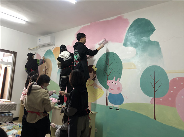 3月6日,由南京曉莊學(xué)院團(tuán)委策劃的主題為“行知圓夢·用心用手繪就一片藍(lán)天”殘疾人居室手繪公益活動,在君子殘疾人之家正式開展。本次活動,經(jīng)過為期2個月的籌備,邀請?zhí)厥鈨和逃龑<?、心理學(xué)專家、藝術(shù)設(shè)計(jì)專家親臨指導(dǎo),由南京曉莊學(xué)院美術(shù)系百名志愿者執(zhí)筆完成,設(shè)計(jì)創(chuàng)作了一系列不同主題的手繪作品,并成功為君子殘疾人之家殘疾學(xué)員10間臥室進(jìn)行美化改造。在這充滿溫情的“雷鋒月”,志愿者用實(shí)際行動來傳承和弘揚(yáng)雷鋒奉獻(xiàn)友愛、互助進(jìn)步的志愿精神,為殘疾孩子圓夢,為君子殘疾人之家的文化建設(shè)添上濃重一筆。