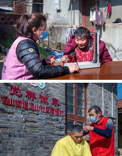 活動現(xiàn)場,身穿不同顏色馬甲的志愿者們上門為老人維修家電、為殘障人士理發(fā)打掃衛(wèi)生、為困境兒童輔導(dǎo)功課,文明之花在湯山社區(qū)遍地綻放。