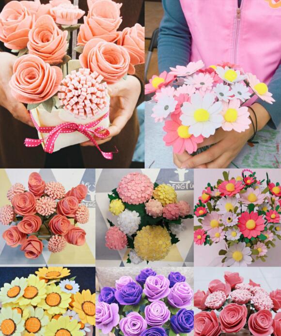 活動(dòng)現(xiàn)場(chǎng),社區(qū)志愿者一對(duì)一的為大家講解布藝花的制作步驟,居民們對(duì)手工制作布藝花的興趣極高,跟著志愿者的節(jié)奏,剪裁、擰捏、粘貼、縫制...把材料包里一片片五顏六色的布做成了一朵朵精美的花。隨后,志愿者又組織居民把各種布藝花:粉玫瑰、康乃馨、向日葵、小雛菊、綠樹(shù)葉等搭配組合包裝在一起,居民們一邊研究一邊創(chuàng)作。歡聲笑語(yǔ)中,一件件美麗的花藝作品呈現(xiàn)出來(lái)。鄰里之間彼此相互交流制作心得,每個(gè)人臉上都洋溢著幸??鞓?lè)的笑容。最后大家手捧著自己的作品合影留念,場(chǎng)面十分溫馨。