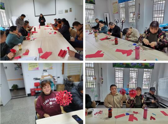 活動開始,志愿者老師給殘友們講解了剪紙在我國的悠久歷史和含義,使大家對剪紙藝術(shù)特色有大概的了解,在剪紙中感受到細(xì)微變化帶來的巨大差異,感受到剪紙的樂趣?;顒舆€準(zhǔn)備了“心隨手動”和“憤怒的畫家”等小游戲。在“心隨手動”游戲中,殘友們在志愿者老師的指導(dǎo)下用剪刀慢慢的剪,他們有條不紊地上下翻折著手中的彩紙,時而低頭思考,時而又拿起來仔細(xì)地對照著圖樣,神情十分專注。雖然學(xué)習(xí)剪紙的過程中遇到一些困難,有的人嘗試了兩次都不小心剪壞了形狀,但是,他們并沒有就此放棄。每個人都剪出了獨(dú)一無二的雪形窗花。