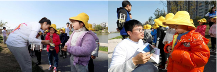 “我們的母親河發(fā)源于哪里?”“我知道,我來答!”這是知識(shí)問答游戲現(xiàn)場(chǎng),頭戴“小黃帽”的孩子們正在舉手踴躍搶答著,吸引了不少行人駐足觀看。節(jié)水愛水是活動(dòng)的一個(gè)主題,受到老師的啟發(fā),大家想出了許多日常生活中的節(jié)水小妙招:洗臉?biāo)⒀烙萌萜鞴?jié)水,洗衣服的水可以拖地,洗澡水可以沖馬桶,淘米水可以澆花、少用一次性塑料袋的白色垃圾等。在活動(dòng)過程中,志愿者講述了一個(gè)“愛心放生”小故事,小朋友昊昊看到一個(gè)在河邊釣魚的叔叔桶里有一條受傷的小魚,見其可憐,于是央求媽媽將魚買下帶回家放在魚缸里照料。不料小魚病好后也沒什么精神,甚至還屢屢撞魚缸。昊昊不解,問媽媽。媽媽回答說魚兒也有家庭,它渴望和家人相聚。昊昊經(jīng)過心里斗爭(zhēng),雖然十分不舍,但還是將魚兒放回秦淮河。