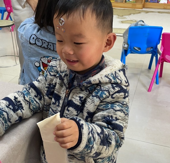 活動(dòng)中,中心老師引導(dǎo)家長、幼兒進(jìn)行了熱身活動(dòng)“魔袋尋寶”,組織大家通過“拉紅繩”的形式進(jìn)行分組,相互分工合作,很快就找到“寶藏”并順利完成任務(wù)。熱身游戲后的“手工剪紙做手工”環(huán)節(jié),志愿者為所有幼兒派發(fā)彩紙、剪刀、膠水等工具,并逐一示范每個(gè)操作步驟,“上下對折、左右對折、沿著虛線折......”幼兒們聽得格外認(rèn)真,個(gè)個(gè)都是躍躍欲試、大顯身手的模樣,迫不及待地?cái)[弄起手中的彩紙。在志愿者和家長的幫助下,幼兒們順利完成了自己的作品,自豪地向小伙伴炫耀起來?;顒?dòng)的最后,家長們跟著老師的指令帶著孩子們做起身體運(yùn)動(dòng),隨著歡樂的音樂,拍拍手、跺跺腳,轉(zhuǎn)圈圈…孩子們都開心極了,臉上洋溢著快樂的笑容。