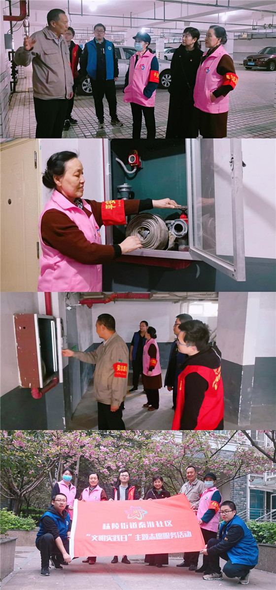 江寧區(qū)第十個文明實踐日到來之際,南京市江寧區(qū)秣陵街道秦淮社區(qū)黨員、巾幗志愿者、實踐站工作人員為保障小區(qū)內(nèi)消防安全,進行了小區(qū)地下消防巡查。