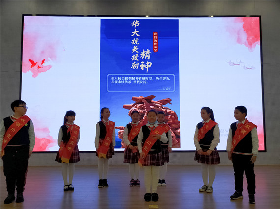 隨后,紅領(lǐng)巾宣講團(tuán)的少先隊(duì)員分別圍繞革命精神、抗美援朝精神、抗疫精神、脫貧攻堅(jiān)精神結(jié)合自己所見所聞所感,分享自己的心得體會(huì)。來自五年級(jí)六班的朱梓淇同學(xué)說:“作為少先隊(duì)員,我們要好好傳承紅色基因,爭做強(qiáng)國少年,不辜負(fù)像朱爺爺這樣的革命先輩用鮮血換來的幸福生活。”