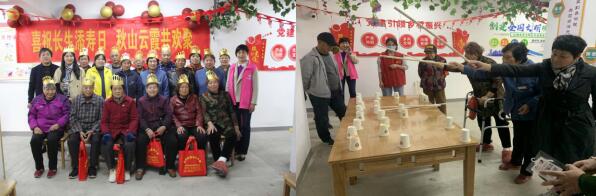 在趣味釣魚游戲的過程中,老人們都自始至終都在為自己的順利過關(guān)而滿足,為同伴成功而歡呼。即使在整個(gè)磨合過程結(jié)束之后,大家都很累,可每個(gè)人都興高采烈地議論著游戲中的事情,都感到回味無窮。歡樂時(shí)刻留在隨后一刻——慶生環(huán)節(jié)!主持人邀請(qǐng)壽星們來到臺(tái)上,志愿者為壽星們點(diǎn)上生日蠟燭,現(xiàn)場(chǎng)所有參與者為壽星們齊唱生日歌,切蛋糕。參加生日會(huì)的壽星說:“真的很開心,很感謝政府,為老人開展越來越多的活動(dòng)。”