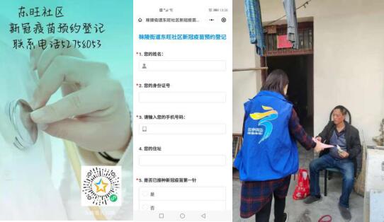 二是東旺社區(qū)率先采用微信小程序“問卷星”,發(fā)布于各微信群等網(wǎng)絡(luò)平臺(tái),更方便快捷及時(shí)有效的通知居民疫苗預(yù)約,讓居民可以掃碼登記。網(wǎng)絡(luò)平臺(tái)發(fā)布接種點(diǎn)政策安排和預(yù)約登記方式等重要信息,全面推行疫苗接種承諾公示制度,不斷擴(kuò)大宣傳覆蓋面,提升居民知曉率,全力以赴確保轄區(qū)人員應(yīng)接盡接。