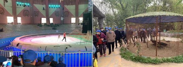 珍珠泉位于南京北部,是以自然景觀為主體,融旅游觀光、休閑娛樂、度假療養(yǎng)為一體的好去處?;顒?dòng)當(dāng)天,一行人前往南京珍珠泉。剛剛落地就被景區(qū)如詩(shī)如畫的風(fēng)景所吸引,蜿蜒曲折的羊腸小道,波光粼粼的湖面,連綿起伏的山脈,共同繪就了一幅“山水相依生態(tài)美麗”的水墨畫卷。隨后,一行人來到珍珠泉?jiǎng)游飯@看動(dòng)物,老虎、獅子、鴕鳥、黑熊......各種各樣的動(dòng)物讓老人們看的眼花繚亂。緊隨其后的動(dòng)物表演,更是贏得了老人的一致認(rèn)可??粗实膭?dòng)物表演,現(xiàn)場(chǎng)歡呼聲、叫好聲連綿不絕。