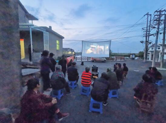 民主村地處南京邊界,距離城里最近的電影院開車也要50分鐘車程,很多年齡大的村民一輩子也沒去電影院看過一場電影,通過露天電影的方式,讓電影文化走進(jìn)千家萬戶,讓腿腳不便的老年人、沒有時(shí)間精力的中年人、沒有機(jī)會(huì)與條件的留守兒童都能看上電影,既傳播了正能量,又豐富了村民們飯后文化生活。