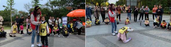 活動在廣場上進(jìn)行,共有三十余組家庭到場參與。活動在親子游戲的歡樂氛圍中拉開序幕,擊鼓傳花、反應(yīng)力游戲,讓孩子們帶著興奮勁進(jìn)入到了熒光夜游的重點(diǎn)環(huán)節(jié)。志愿者們把熒光發(fā)飾分發(fā)給孩子們,并幫助孩子們戴到頭上和手臂上。孩子們看著彼此頭上閃閃發(fā)亮的發(fā)飾都感到很新奇,對接下來的活動也充滿了好奇?;顒釉诠ぷ魅藛T的指令下正式開始,《閃閃的紅星》的音樂響起。孩子們跟著工作人員的舞步盡情舞動,稚嫩的聲音唱起紅歌,紅歌是中華民族寶貴的精神財(cái)富,紅歌精神催人奮進(jìn),激勵斗志。有的小朋友還在工作人員的鼓勵下上臺展示才藝,獨(dú)唱《魯冰花》、《外婆的澎湖灣》、《讓我們蕩起雙漿》等歌曲;還有的小朋友一展優(yōu)美的舞姿,引得在場的家長、孩子和來往的路人不禁鼓掌喝彩。