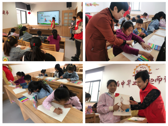 活動(dòng)開(kāi)始,學(xué)林東路幼兒園的志愿者老師從講述勞動(dòng)節(jié)的由來(lái)與意義、身邊的勞動(dòng)者、親身體驗(yàn)勞動(dòng)、勞動(dòng)節(jié)歌曲四個(gè)方面開(kāi)始闡述勞動(dòng)節(jié),引導(dǎo)孩子們了解:勞動(dòng)者通過(guò)斗爭(zhēng),爭(zhēng)取到了自己的合法權(quán)益,是人類(lèi)文明民主的歷史性進(jìn)步,這才是五一勞動(dòng)節(jié)的精髓所在。接著,由“四點(diǎn)半課堂”的老師帶領(lǐng)孩子們朗誦:勞動(dòng)最光榮、勞動(dòng)節(jié)詩(shī)歌、勞動(dòng)節(jié)拍手歌等。最后,志愿者老師給孩子們發(fā)放早已準(zhǔn)備好的畫(huà)具,孩子們盡情發(fā)揮,紛紛亮出了自己的看家本領(lǐng),經(jīng)過(guò)一番思考后,認(rèn)真進(jìn)行繪畫(huà)的創(chuàng)作?,F(xiàn)場(chǎng)氣氛熱烈,孩子們時(shí)而凝神屏氣細(xì)描慢畫(huà),時(shí)而疾筆如飛添色加彩,她們?cè)鷮?shí)的繪畫(huà)功底展示得淋漓盡致。一會(huì)兒工夫,一幅幅作品展現(xiàn)在大家眼前,孩子們以筆為介,歌頌最美勞動(dòng)者。