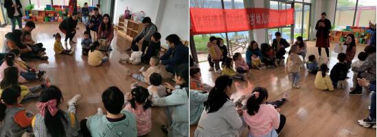 0-3歲是孩子成長的黃金階段,作為一個(gè)社會(huì)人的所有基礎(chǔ)的奠定,在嬰幼兒時(shí)期的效率是最高的?;顒?dòng)伊始,老師親切地問孩子們的名字,在粘貼紙上寫上孩子的名字,在接下來的課堂上用《Hello之歌》先讓每個(gè)孩子被大家認(rèn)識(shí),讓孩子們覺得自己是被重視的,有利于孩子們?cè)谡n上專注。隨后,老師與大家進(jìn)行繪本閱讀,老師通過講故事的方式讓孩子們有興趣,吸引孩子們到身邊一起參與閱讀,鍛煉孩子的膽量,訓(xùn)練孩子的語言能力。閱讀過程中,老師傳授給家長教育技巧。老師告訴他們要讓孩子看到同伴的行為,讓他們互相影響,互相學(xué)習(xí),就會(huì)潛移默化的影響行為,鍛煉自主能力。