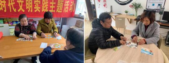 活動(dòng)當(dāng)天,社區(qū)內(nèi)的老年朋友相聚在中前社區(qū)活動(dòng)中心,拼圖、下棋、七巧板、打牌、閱讀等各式各樣的活動(dòng)供老人們選擇。每次都積極參加社區(qū)活動(dòng)的劉奶奶表示,這里就是他們的“第二個(gè)家”。居民張奶奶也說(shuō)道:“社區(qū)真是太貼心了,在活動(dòng)中心,我們平時(shí)沒(méi)事就來(lái)這里打打牌、聊聊天,旁邊還有報(bào)紙和書(shū)看,戴著老花鏡看看雜志也挺好。”活動(dòng)中心不僅是老人們休閑娛樂(lè)的場(chǎng)所,也是鍛煉腦力的好去處。老人們下象棋,是情趣高雅的愛(ài)好,不僅能鍛煉思維能力,對(duì)促進(jìn)身心健康也有積極作用。