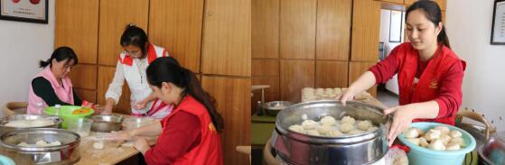 志愿者們一大早就來到了村活動室內(nèi),準備好做面點所需要的材料:面粉、酵母、糖、鹽、水和肉等。把面粉和成團,把肉切碎并攪拌,搟皮、包餡,志愿者們分工合作,活動室內(nèi)一派熱火朝天。隨著一陣香味從蒸籠里傳來,一個個飽滿的包子出爐了。