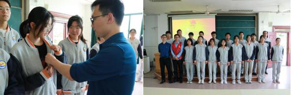 “我們是五月的花海,用青春擁抱時代。我們是初升的太陽,用生命點燃未來。“五四”的火炬,喚起了民族的覺醒......”團員青年們用激情澎湃、朝氣蓬勃的團歌拉開了活動的帷幕。趙主任宣讀新團員名單,朱書記和李書記為新團員佩帶團徽,希望團員青年在莊嚴肅穆的儀式中接收到“沉浸式”精神洗禮,向團徽蘊含的象征物一樣,展現(xiàn)出朝氣蓬勃、奮發(fā)進取的精神風貌,為團組織注入新的活力。