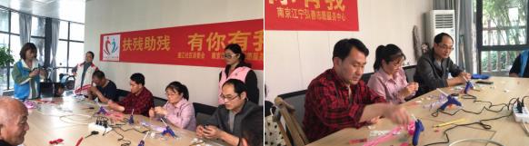 為激發(fā)殘疾人熱愛(ài)生活,享受生活的熱情,提高殘疾人職業(yè)技能,為轄區(qū)殘疾人提供更方便、優(yōu)質(zhì)、實(shí)惠的便民服務(wù),5月8日,南京市江寧區(qū)江寧街道盛江社區(qū)聯(lián)合弘善志愿服務(wù)中心在社區(qū)金桂園南門網(wǎng)格站點(diǎn)開(kāi)展“扶殘助殘,有你有我”志愿服務(wù),邀請(qǐng)轄區(qū)內(nèi)殘疾人士積極參與,全面促進(jìn)殘疾人創(chuàng)業(yè)就業(yè)。