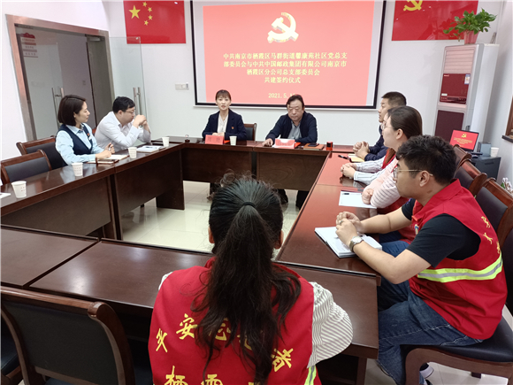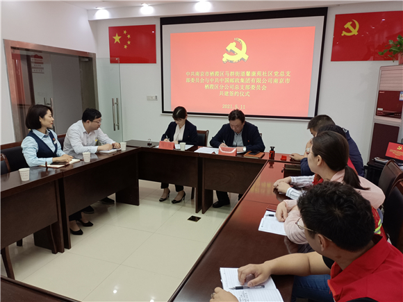 為進一步深化黨史學習成效,更好地服務轄區(qū)居民。5月11日上午,南京市棲霞區(qū)馬群街道馨康苑社區(qū)黨總支與中國郵政集團有限公司南京市棲霞區(qū)分公司黨總支共建簽約儀式在社區(qū)二樓會議室隆重召開,進一步拓寬基層黨建新路徑的同時,謀劃了區(qū)域內(nèi)社企黨組織合作共贏新篇章。當天,共建雙方黨總支書記、委員與黨員代表參加了本次活動。