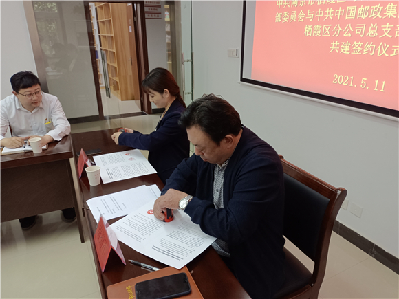 簽約儀式上,社區(qū)黨總支書記唐擁軍同志首先介紹了轄區(qū)基本情況和社區(qū)黨建開展情況,對結(jié)對共建工作表達了良好祝愿與美好期待。接著,雙方就組織共建、黨員教育、資源共享、發(fā)展共贏等方面進行了探討及交流,達成一致意見并鄭重簽署了共建協(xié)議。中國郵政集團有限公司南京市棲霞區(qū)分公司黨總支書記周艷同志表示:“會以此共建為契機,充分發(fā)揮自身資源優(yōu)勢,積極參與到社區(qū)為民服務活動中去,切實履行社會責任,實現(xiàn)優(yōu)勢互補、共同發(fā)展。”