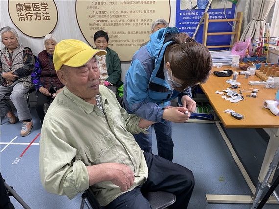 義診活動(dòng)在有序的進(jìn)行著,工作人員為殘疾朋友監(jiān)測(cè)血壓、血糖,并為大家做健康知識(shí)宣教,告知他們合理運(yùn)動(dòng),注意飲食,保持良好的生活習(xí)慣,有助于遠(yuǎn)離并發(fā)癥的困擾。接下來(lái)為了讓大家更好的了解助疾文化,工作人員播放了一段宣傳小視頻讓大家把注意力聚焦起來(lái),看完小視頻,一些叔叔阿姨帶著自己的疑惑提出了問(wèn)題:“我怎么沒(méi)有看到過(guò)這些助殘方式呢?”“在我們生活中大家都有聽(tīng)說(shuō)或者親身體驗(yàn)過(guò)的,可能今天我跟大家講的更專業(yè)化一些。比如:家庭醫(yī)生上門(mén)服務(wù)、殘疾人之家的日間托養(yǎng)、以及你們經(jīng)常來(lái)做康復(fù)等等都是的呀”。聽(tīng)完之后眾人夸贊在習(xí)近平總書(shū)記的領(lǐng)導(dǎo)下生活越來(lái)越好了,幸福指數(shù)越來(lái)越高,感謝政府領(lǐng)導(dǎo)對(duì)殘疾人們的關(guān)心。
