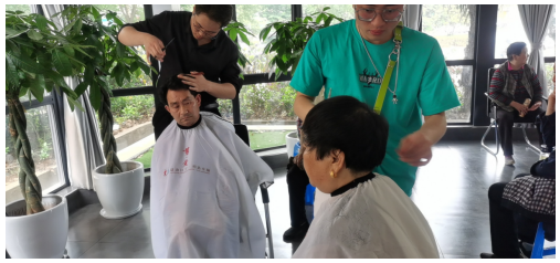 講座結束后,志愿者又為老年居民,和殘疾人士提供免費理發(fā)。義剪現(xiàn)場,理發(fā)師們妙手生花,按照每個人的要求修剪發(fā)型,看著修剪后的模樣,大家露出滿意的笑容,紛紛表示可以從頭開始清涼一夏了,現(xiàn)場其樂融融,歡聲笑語連綿不絕。