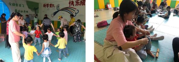 活動(dòng)中還安排了早操、自我介紹、音樂(lè)課、互動(dòng)游戲等環(huán)節(jié),嬰幼兒們聽(tīng)隨笑笑老師的指令,認(rèn)真完成拍小鼓,敲擊雙響筒等有利于激發(fā)孩子們音樂(lè)細(xì)胞的小游戲,孩子們爭(zhēng)取贏得表示夸贊的小紅花。短短一小時(shí)的親子活動(dòng)轉(zhuǎn)瞬即逝,在家長(zhǎng)的陪同下,嬰幼兒們玩得不亦樂(lè)乎,現(xiàn)場(chǎng)其樂(lè)融融,十分幸福和諧。