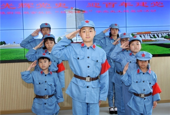 小娃娃向黨旗致以標(biāo)準(zhǔn)的軍禮