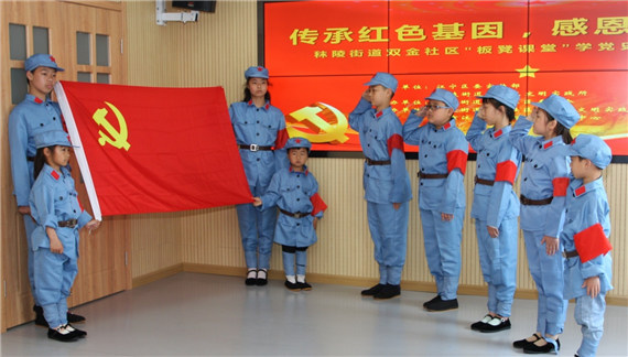 “紅星閃閃放光彩,紅星燦燦暖胸懷,紅星是咱工農(nóng)的心,黨的光輝照萬代……”一首清脆而嘹亮的童聲歌曲響徹在社區(qū)課堂,久久回蕩,催人奮進(jìn)。