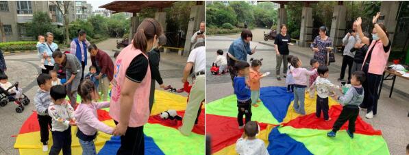 本次活動(dòng)邀請(qǐng)了全國職業(yè)認(rèn)證中心閱讀規(guī)劃師、繪本館館長柳絮老師帶領(lǐng)孩子們一起讀書?;顒?dòng)開始,孩子們先進(jìn)行了自我介紹,在熱身游戲之后,孩子們之間逐漸熟悉起來。在鋪著彩虹傘的地面,孩子們跟著老師“開火車”,一個(gè)接著一個(gè),每個(gè)孩子的臉上都洋溢著歡樂的笑容。隨后,一陣悅耳的音樂響起,柳老師又帶著孩子們一起跳舞,孩子們努力地跟上老師的動(dòng)作,小手搖擺著、揮舞著。
