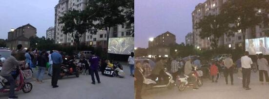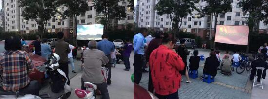 為了將黨史學習教育深入開展,深入民心。5月21日晚夜幕剛剛降臨,江寧區(qū)東山街道邵圣社區(qū)金竹花園內人頭攢動、熱鬧非凡。工作人員正在擺弄碩大的銀幕準備試機、調試音響。居民們三一群、倆一伙,陸續(xù)來到廣場,有的居民還把孩子帶來一塊兒觀看露天電影。