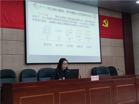 本次黨課邀請(qǐng)了棲霞區(qū)委黨校高小雅老師,以“毛主席視察十月村的歷史回顧和當(dāng)代啟示”為題,從歷史回顧、背景及影響、當(dāng)代啟示三個(gè)方面,講述了1956年1月毛澤東主席來到棲霞十月村視察,提出成立農(nóng)村合作社,組織起來走共同富裕道路的一段歷史典故,教育引導(dǎo)廣大黨員牢記初心使命,堅(jiān)守服務(wù)人民的根本宗旨。