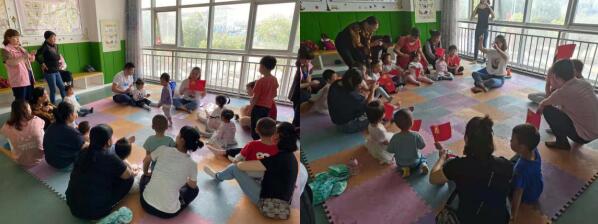 本次活動(dòng)共吸引了轄區(qū)十余組家庭到場(chǎng)參與,老師先給家長(zhǎng)講課堂秩序,避免影響寶寶的專注力。隨后,老師給家長(zhǎng)及幼兒講述了黨的名字、黨的生日、黨徽、黨旗、黨員、黨的領(lǐng)導(dǎo)人等黨的基本知識(shí),在孩子心中播撒紅色的種子。接著,老師又給大家講起了紅色經(jīng)典故事,帶領(lǐng)幼兒了解全國(guó)各族人民從積貧羸弱的舊中國(guó)披荊斬棘一路走來的光輝歷程,銘記紅色歷史,傳承紅色基因。隨著一陣激昂的旋律響起,孩子們一起學(xué)習(xí)紅歌《我們是共產(chǎn)主義接班人》。在百年黨史劃小船游戲中,孩子們一起鉆山洞、運(yùn)小杯,追憶紅船歷史。老師準(zhǔn)備了紅紙、黨徽?qǐng)D案、吸管、雙面膠等材料,讓家長(zhǎng)帶著孩子們一起制作黨旗,孩子們舉著黨旗齊唱《我是中國(guó)好寶寶》,稚嫩的童音唱出了對(duì)祖國(guó)美好未來的祝福。