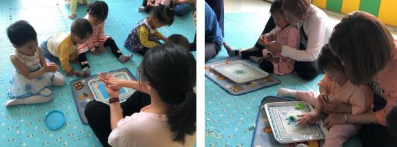 本次活動共吸引了社區(qū)11組家庭前來參與。活動現(xiàn)場,笑笑老師帶領寶寶們復習上一節(jié)課的模仿“小動物走路”游戲,“小烏龜是怎么走路的呀?”笑笑老師問。小朋友們一同回答道:“小烏龜走路爬呀爬”,小朋友們相比之前對環(huán)境更熟悉了,也更開朗。有的小朋友還學小烏龜走路,在地上爬、翻滾,家長們也在旁拿出手機記錄自家寶寶成長的一幕。到了自我介紹環(huán)節(jié),有位小朋友還沉浸在上一環(huán)節(jié),迷迷糊糊介紹道:”我是小烏龜……”引得現(xiàn)場的老師家長們?nèi)炭〔唤?。隨后,笑笑老師教小朋友們做泥塑,小朋友們在家長的協(xié)助下將橡皮泥搓圓捏扁。經(jīng)過各色橡皮泥的搭配和組合,一個個精美的泥塑成型了,有葡萄、草莓、香蕉等等。