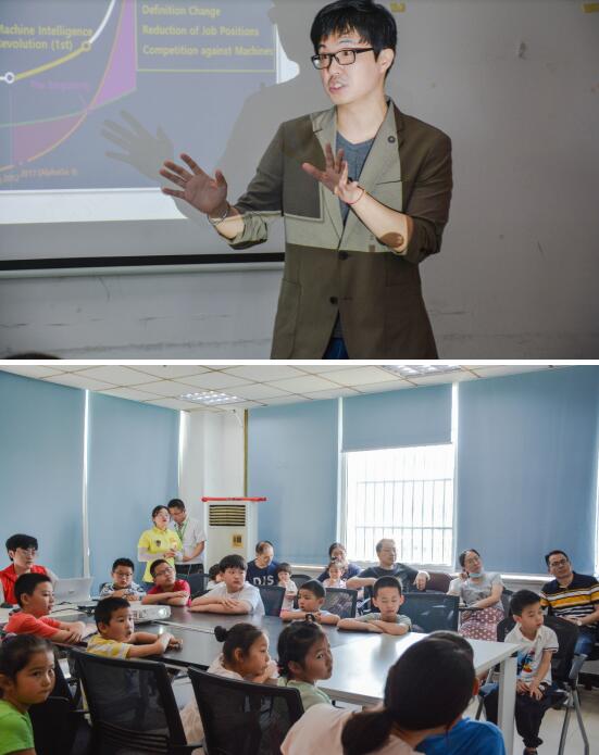 上午9點(diǎn),社區(qū)的家長(zhǎng)帶著自己的孩子們陸續(xù)來(lái)到這里,隨著整個(gè)會(huì)場(chǎng)座無(wú)虛席,本次活動(dòng)正式開(kāi)始。來(lái)自南京航空航天大學(xué)藝術(shù)學(xué)院的千炫珍教授為大家?guī)?lái)的“新時(shí)代思維教育的重要性”的科普講座。在講座中,千教授從第四次工業(yè)革命的角度談起,表達(dá)了設(shè)計(jì)思維的重要性,并通過(guò)在工業(yè)、商業(yè)、紡織業(yè)、農(nóng)業(yè)等不同行業(yè)的不同例子的展示,生動(dòng)的展現(xiàn)了在技術(shù)發(fā)達(dá)的當(dāng)下,轉(zhuǎn)變并擁有設(shè)計(jì)思維的重要意義。同時(shí),千教授還通過(guò)圖像演示等方式,向大家展示了3D打印、機(jī)器人等新技術(shù)的工作原理,激起了孩子們的興趣,也吸引了現(xiàn)場(chǎng)家長(zhǎng)的注意力。