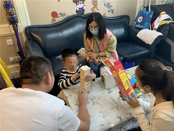 社區(qū)志愿者帶著孩子感興趣的“疊疊樂”益智積木、書籍等用品來到了自閉癥兒童家庭,孩子對積木十分感興趣,當(dāng)即拆開動手疊了起來。志愿者一邊陪著孩子疊積木,一邊跟其親切地交談,孩子在志愿者的陪伴下漸漸露出真摯開心的笑臉。隨后,志愿者翻開準備的圖文故事書,開展互動式閱讀,通過聲情并茂的講故事,與孩子進行交流,志愿者鼓勵家長,相信在親人愛的陪伴下,自閉癥兒童也能享有終身受用不盡的閱讀樂趣。家長對志愿者的到來表示十分感謝,謝謝社區(qū)對孩子的關(guān)愛,給孩子帶來了歡樂,也讓家長明白了要讓孩子更多地接觸外界,才能一步一步達到最終“融合”的目標(biāo)。