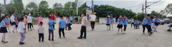 接著,在黨員志愿者的帶領(lǐng)下大家一同來到戶外展開拓展游戲,孩子們迅速排好隊認真聽講游戲規(guī)則。其中有五隊孩子選擇了“兩人三足”的游戲,只聽哨聲一響,他們團結(jié)協(xié)作,你追我趕,邁著平穩(wěn),靈敏的步伐,奮力的向著終點趕去。另外兩隊參與了趣味光盤拔河的游戲,雙方在隊友的吶喊加油下,努力利用身子的跳躍,使得光盤順利滑向?qū)α⒌囊贿??;顒拥淖詈?,大家用合影的方式留下了快樂的瞬間,齊聲喊出“‘六一’兒童節(jié)快樂。”
