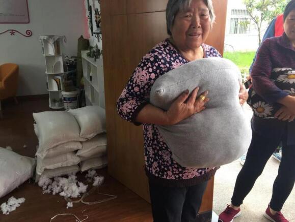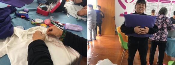 最后,大家各自分享講述自己的作品,講述著帶回家里準備怎么用,有的說腰不好可以放在椅子上靠著,有的打算坐沙發(fā)上看電視的時候抱著,有的拿回去給孩子用,有的要放在床頭靠著。大家都覺得非常的實用,家里的舊衣服有了“用武之地”。
