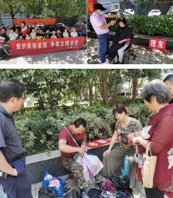 活動(dòng)以小朋友高聲背出社會(huì)主義核心價(jià)值觀拉開序幕。現(xiàn)場(chǎng),志愿者免費(fèi)為老年人理發(fā),為居民修傘,磨刀,義診,刮痧,進(jìn)行反電詐宣傳?;顒?dòng)現(xiàn)場(chǎng)人來(lái)人往,氣氛活躍,居民們根據(jù)自己的需求不停地穿梭在各服務(wù)項(xiàng)目攤位。免費(fèi)理發(fā)的攤位前,志愿者理發(fā)師熟練地修剪著頭發(fā),還不時(shí)詢問(wèn)居民的意見。此外,社區(qū)還結(jié)合環(huán)境日主題,開展垃圾分類知識(shí)宣傳,撿煙頭換雞蛋等活動(dòng),呼吁居民愛(ài)護(hù)環(huán)境,爭(zhēng)做文明市民。居民們有序地排隊(duì)體驗(yàn)各式“項(xiàng)目”,對(duì)本次活動(dòng)提供的便民服務(wù)贊不絕口,直言社區(qū)活動(dòng)想的周到、辦的實(shí)在,希望今后多開展類似的便民服務(wù)。