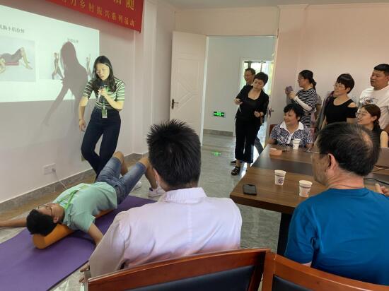 現(xiàn)場,來自江蘇省中醫(yī)藥大學(xué)的主任醫(yī)生徐力教授及其團(tuán)隊(duì)成員,還為前來參加活動的居民群眾進(jìn)行了中醫(yī)藥的科普講解,現(xiàn)場還通過真人演示靠墻拉伸等拉伸動作讓居民群眾學(xué)習(xí)正確拉伸筋骨,鍛煉自己身體。居民群眾們認(rèn)真聆聽,不時跟隨著講解自己在座位上比劃兩下。拉伸講解結(jié)束,團(tuán)隊(duì)成員還為居民群眾把脈問診,耐心詢問居民群眾的病情,仔細(xì)診斷病因,根據(jù)患者的實(shí)際情況指導(dǎo)飲食、運(yùn)動以及日常防治知識,幫助大家養(yǎng)成健康的生活習(xí)慣。