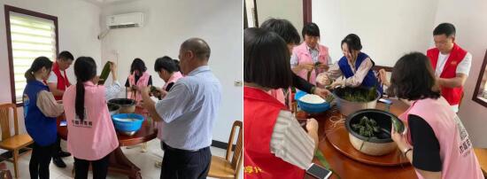 活動現(xiàn)場,一片其樂融融,黨員干部熱心地為志愿者提供幫助,有的志愿者在準(zhǔn)備包粽子的食材,有的志愿者在熟練地包著粽子,有經(jīng)驗的在認真地教初學(xué)者有關(guān)包粽子的技巧,志愿者們圍坐在一起,話著家常,好不熱鬧。包完粽子后,社區(qū)干部帶領(lǐng)黨員、網(wǎng)格員及志愿者為社區(qū)80歲以上老人送去端午粽,給他們帶去組織的關(guān)懷與慰問。