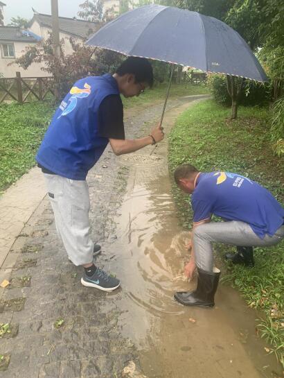 2021年06月10日13時28分江寧區(qū)氣象臺發(fā)布雷暴黃色預(yù)警信號,佘村的天,黑沉沉的布滿了烏云,頃刻間,便下起了滂沱大雨??粗聜€不停的大雨,南京市江寧區(qū)東山街道佘村社區(qū)的網(wǎng)格員們心憂社區(qū)路段被堵,在下雨的第一時間就在網(wǎng)格群中提醒大家做好防護(hù)措施,隨后便拿起雨傘趕赴村中查看村內(nèi)積水實況。對產(chǎn)生積水的地方進(jìn)行疏通,并查看窨井內(nèi)污水流動情況。