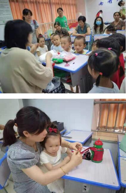 之后,家長(zhǎng)與孩子們開(kāi)始進(jìn)行繪本主題手工制作,在志愿者的教導(dǎo)下,在提前準(zhǔn)備好的粽子形狀的紙板上,根據(jù)粽子的形狀和顏色,先在紙板上填上米飯的顏色和粽葉的綠色,然后幫粽子添加擬人化的可愛(ài)表情,最后將中國(guó)結(jié)加上,現(xiàn)場(chǎng)十分熱鬧,大家制作起來(lái)相當(dāng)認(rèn)真,不一會(huì),一個(gè)可愛(ài)的繪本主題手工就完工了。