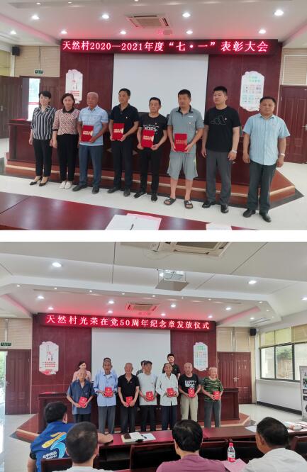 在表彰儀式上,天然村黨總支書記為七一優(yōu)秀黨員表彰,在表彰的同時,還為天然村黨齡達50年的黨員,發(fā)放光榮在崗50年紀念獎?wù)隆?/p>