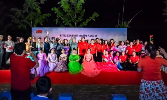 在新時(shí)代文明實(shí)踐站,一群穿戴不同著裝的居民集聚一堂,無(wú)論是演員還是觀眾,個(gè)個(gè)滿是笑臉,在主持人的引導(dǎo)下,由舞蹈演員帶來(lái)的熱舞,拉開了“崢嶸百年,不忘初心”慶祝中國(guó)共產(chǎn)黨成立100周年文藝匯演的序幕。